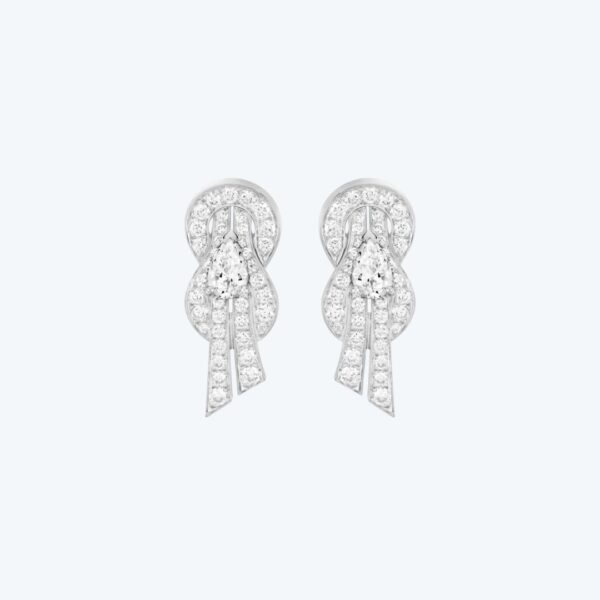 Arracades FRED Chance Infinie model mitjà d’or blanc, pavé de diamants i diamant central talla pera.