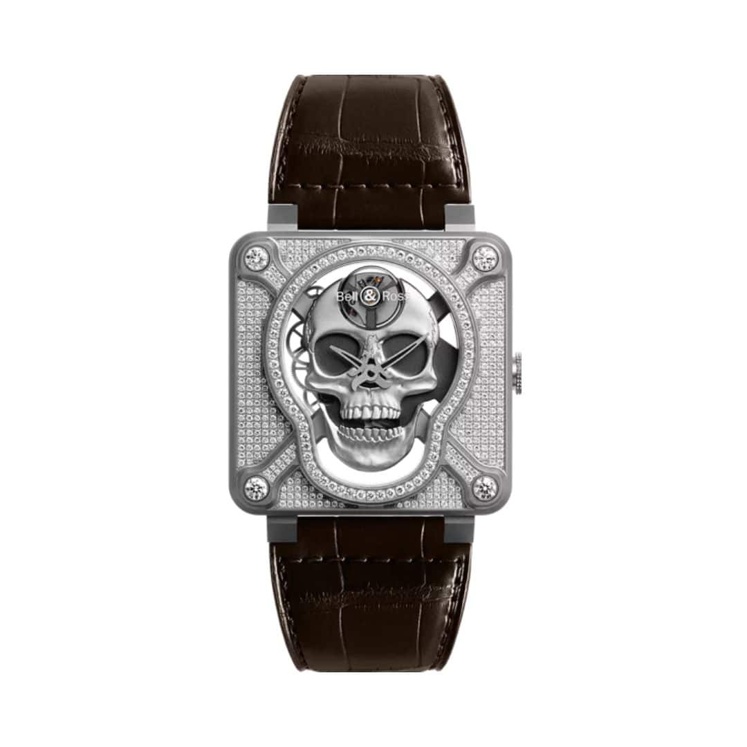 El rellotge Bell & Ross BR 01 Laughing Skull Full Diamond és una peça excepcional que combina alta joieria i enginyeria horològica en un disseny radical i provocador. La seva icònica caixa quadrada de 46 mm està completament pavée amb diamants, aportant una lluentor captivadora i una forta personalitat.