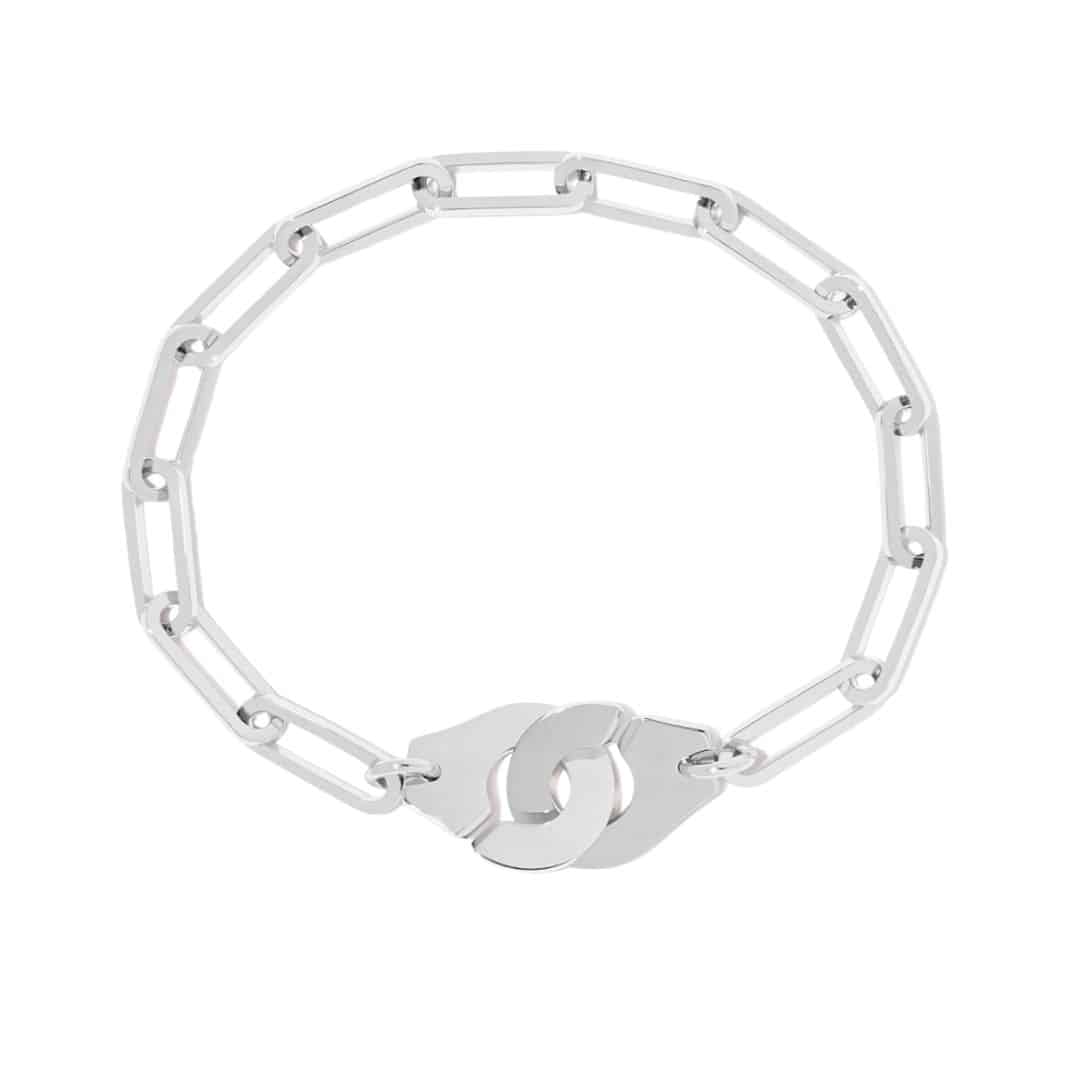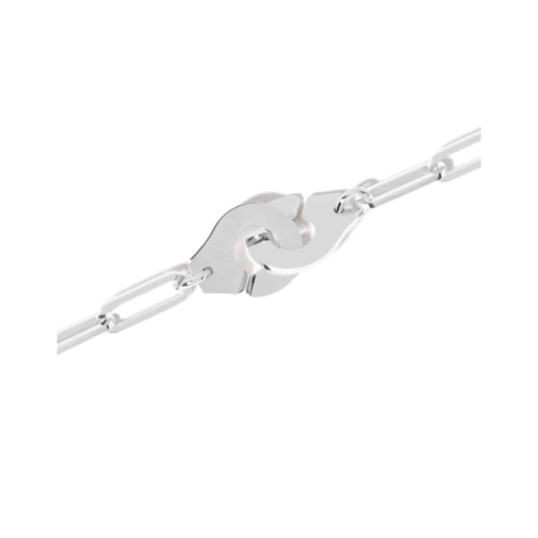 Símbol de llibertat des de 1976, les esposas de la col·lecció Menottes no lliguen, sinó que afirmen. Aquest braçalet amb la cadena Maillon en platí Menottes adquireix una densitat única. El seu rigor formal destaca un vincle ferm, directe i assumit, oferint una manera atrevida de portar aquest motiu icònic.