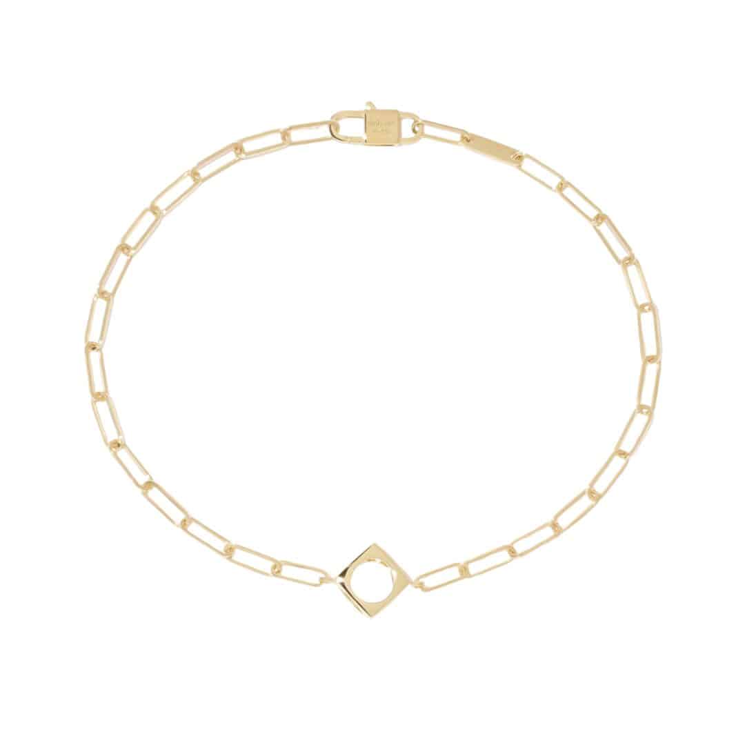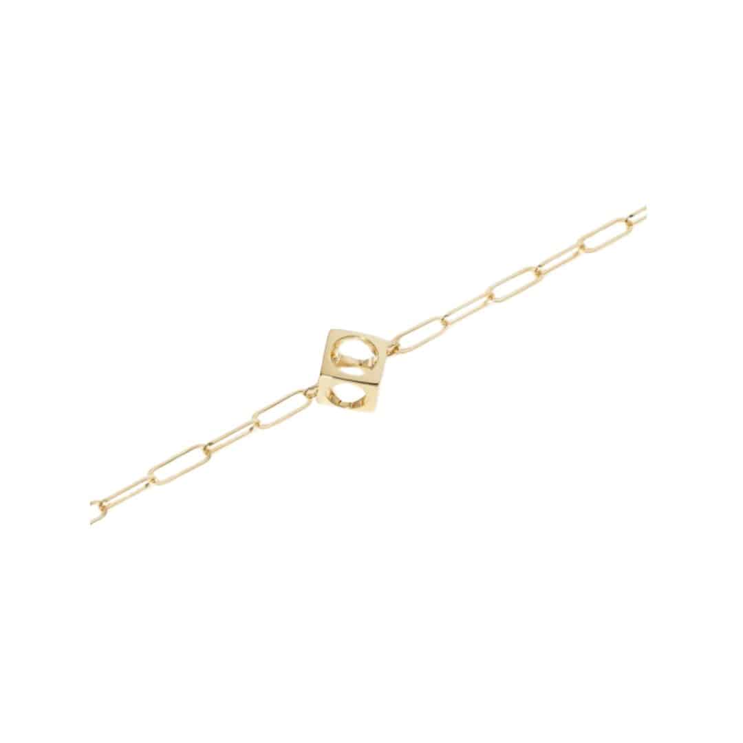 Brazalete Le Pavé en oro amarillo de 18 quilates, una joya discreta pero llena de simbolismo. Inspirado en un símbolo histórico del Mayo del 68, Jean Dinh Van lo reinterpreta en clave arquitectónica y lo convierte en un manifiesto de la joyería libre. Su cadena Maillon, distintiva de la Maison, combina líneas puras y discontinuas que crean un equilibrio sutil entre fuerza y delicadeza.