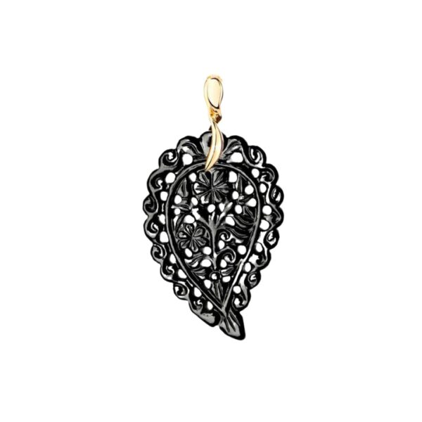 El colgante INDIA Leaf de tamaño mediano presenta una refinada hoja de Ónix negro, tallada a mano con gran cuidado. Cuelga suavemente de un aro de oro de 18 quilates, aportando un contraste intenso y lleno de estilo. Disponible en tres tamaños, es una pieza versátil y sofisticada, ideal para combinar en capas con otros collares y crear combinaciones únicas.